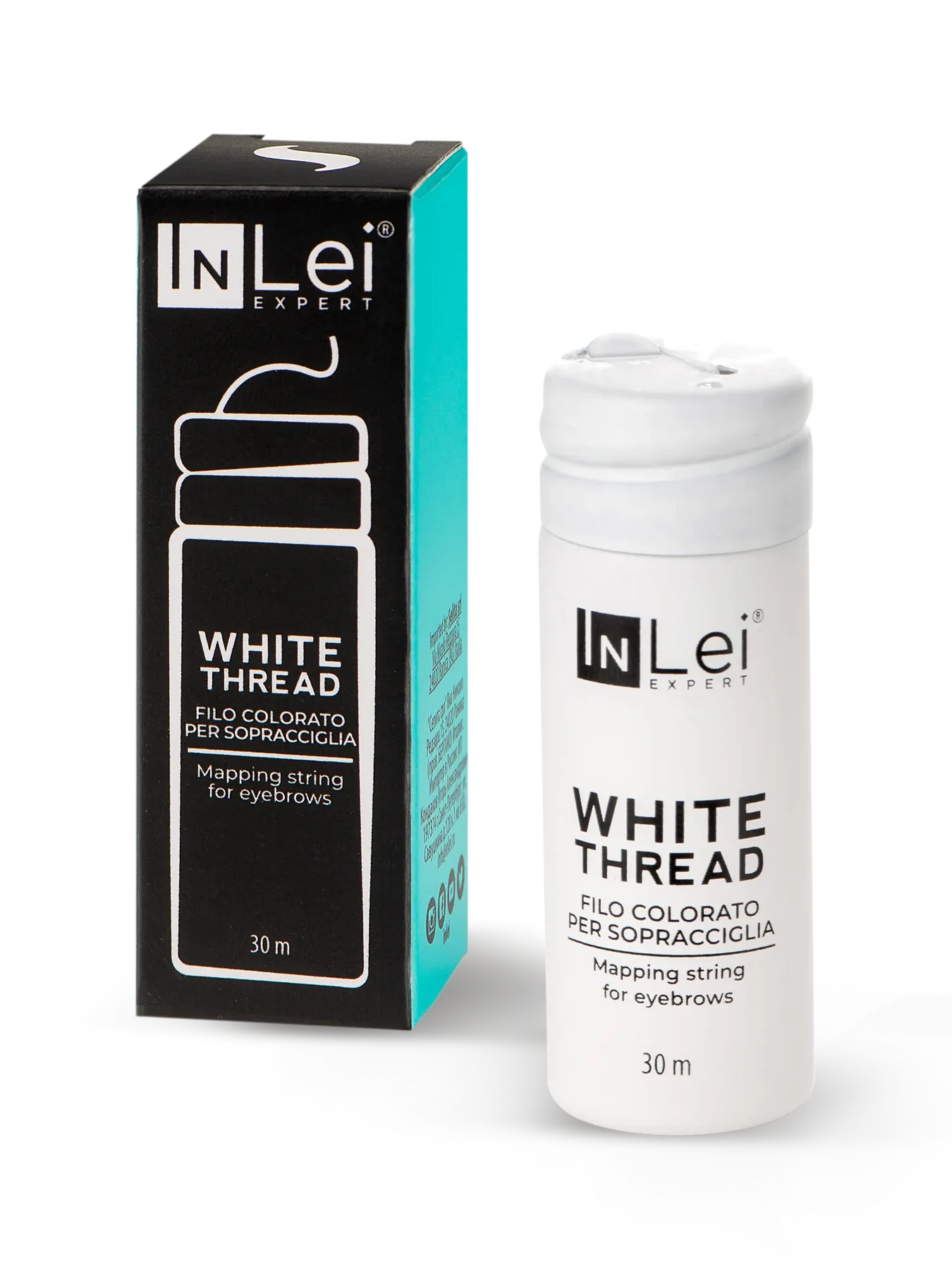 White Thread InLei : il filo per l’architettura imbevuto di colore bianco è adatto a lavorare sia sull’incarnato chiaro sia su quello scuro.È lo strumento migliore per progettare con estrema precisione una forma delle arcate in perfetta armonia con il viso. Indispensabile per i trattamenti di laminazione sopracciglia InLei® Brow Bomber, colorazione con henné e trucco semipermanente.