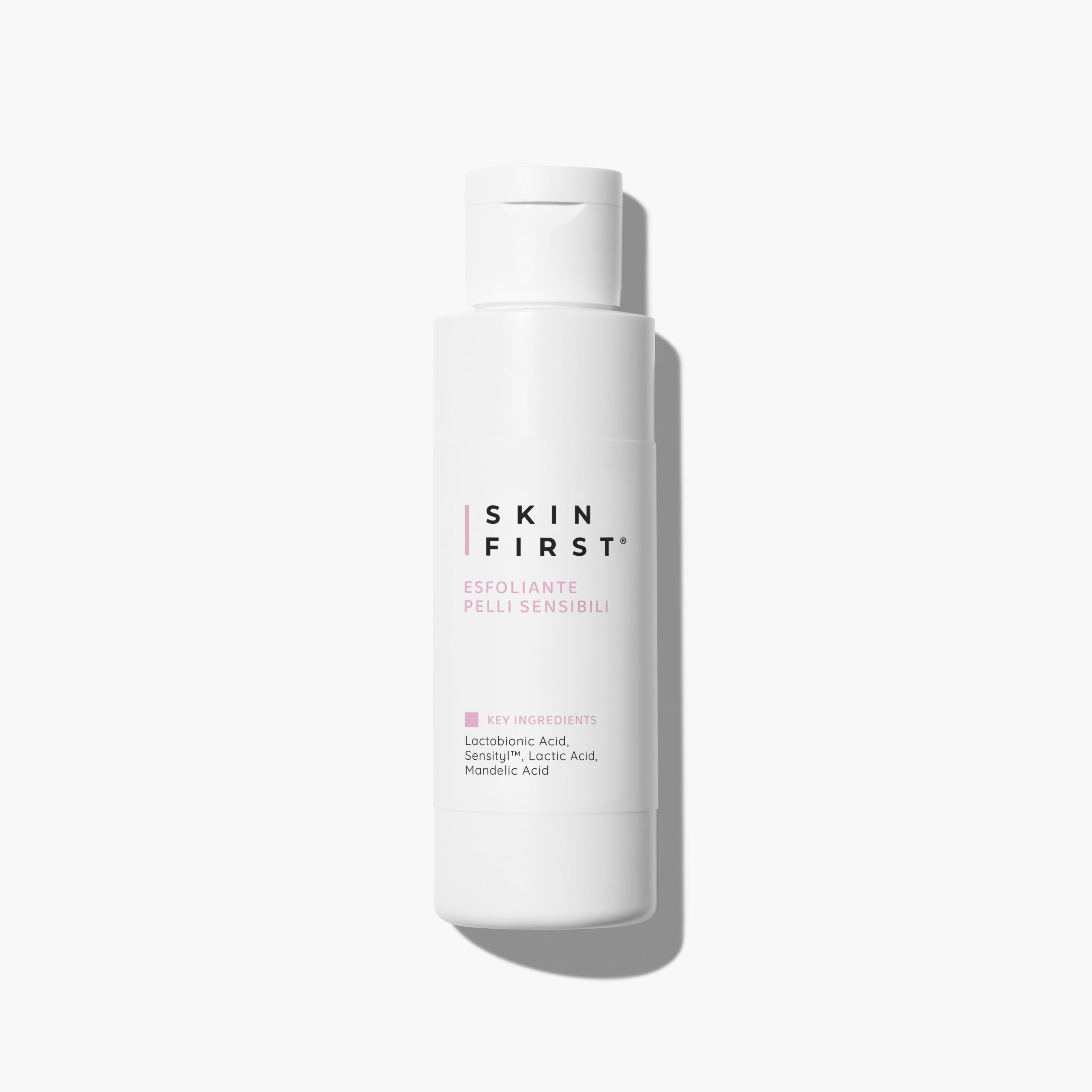 Esfoliante Pelli Sensibili Skin First: chi ha la pelle sensibile di solito evita gli esfolianti, per paura di irritarla. Questo invece nasce per cambiare prospettiva: favorisce il turnover cellulare e dona luminosità e uniformità, senza rispettando la barriera cutanea.