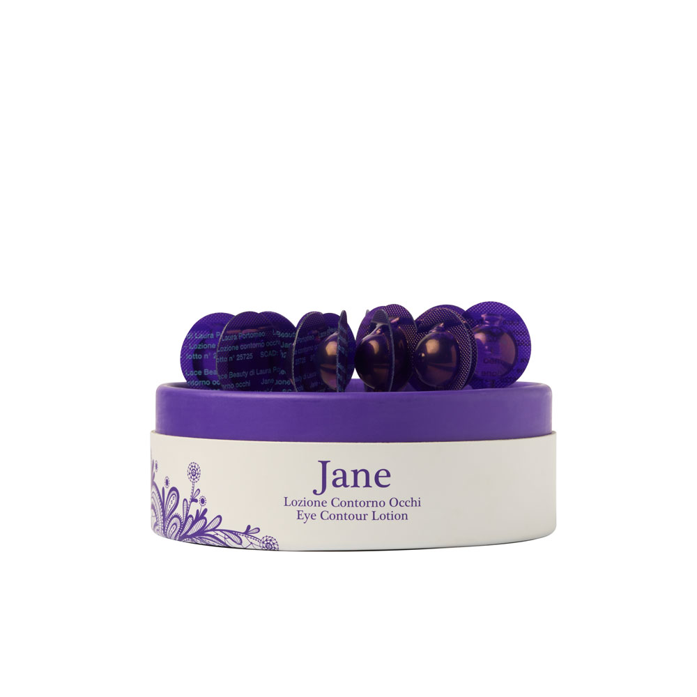 Come usare Jane Lozione Contorno Occhi Lace Beauty: staccare la linguetta lungo la linea tratteggiata e premere la capsula per erogare il prodotto.